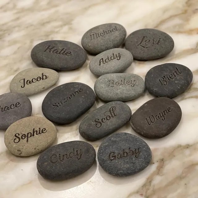 We engrave each stone using professional laser equipment. This process creates permanent lettering that will not fade or rub off. As a result, your personalized stone keeps its message for years.