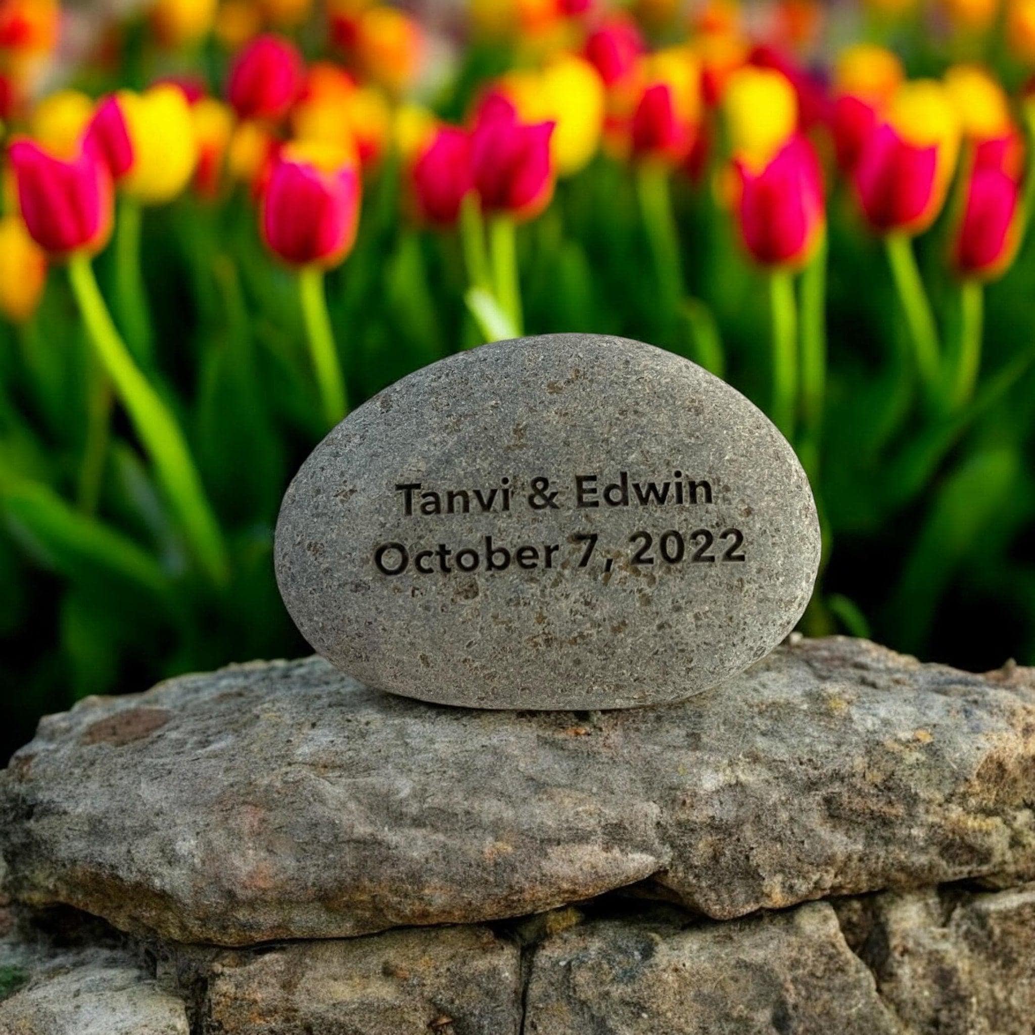 Our personalized river stone offers a simple and lasting way to mark special moments. Each natural stone is carefully selected and engraved with custom names or dates.